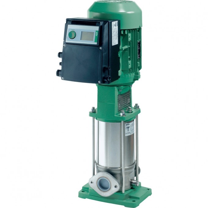 Нормальновсасывающий многосекционный вертикальный высоконапорный центробежный насос во встраиваемом исполнении со встроенным частотным преобразователем с воздушным охлаждением. Встроенный частотный преобразователь позволяет варьировать частоту вращения, регулировать давление и производить ПИД-регулирование.